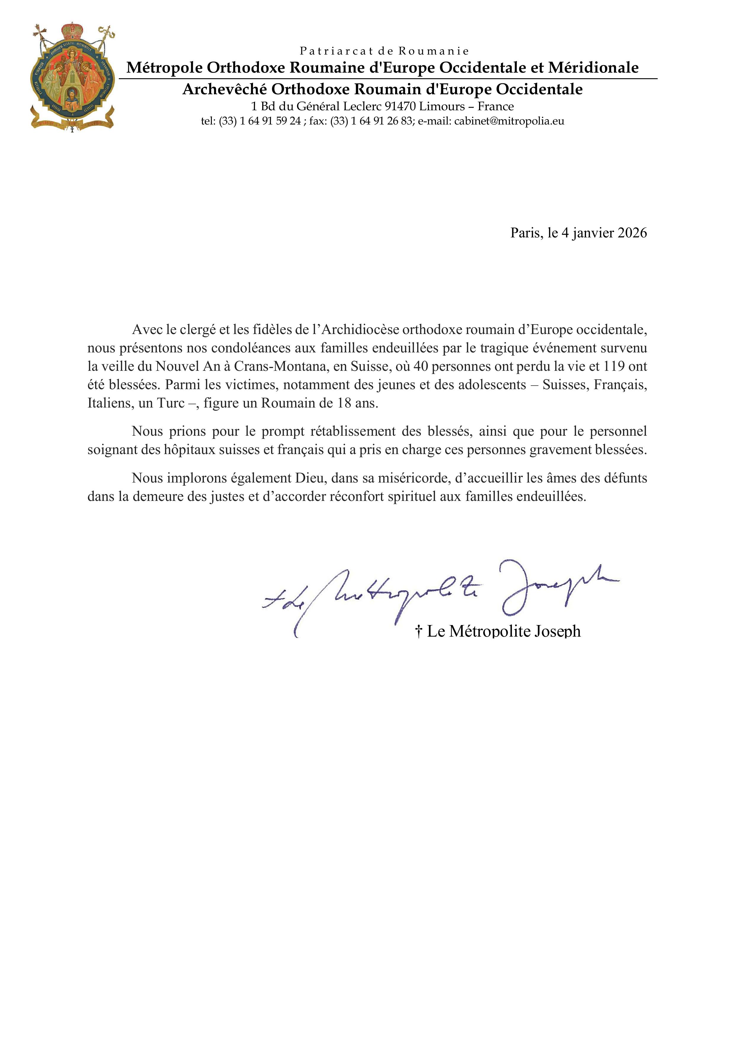 Métropolite Joseph - Lettre Crans-Montana, Suisse