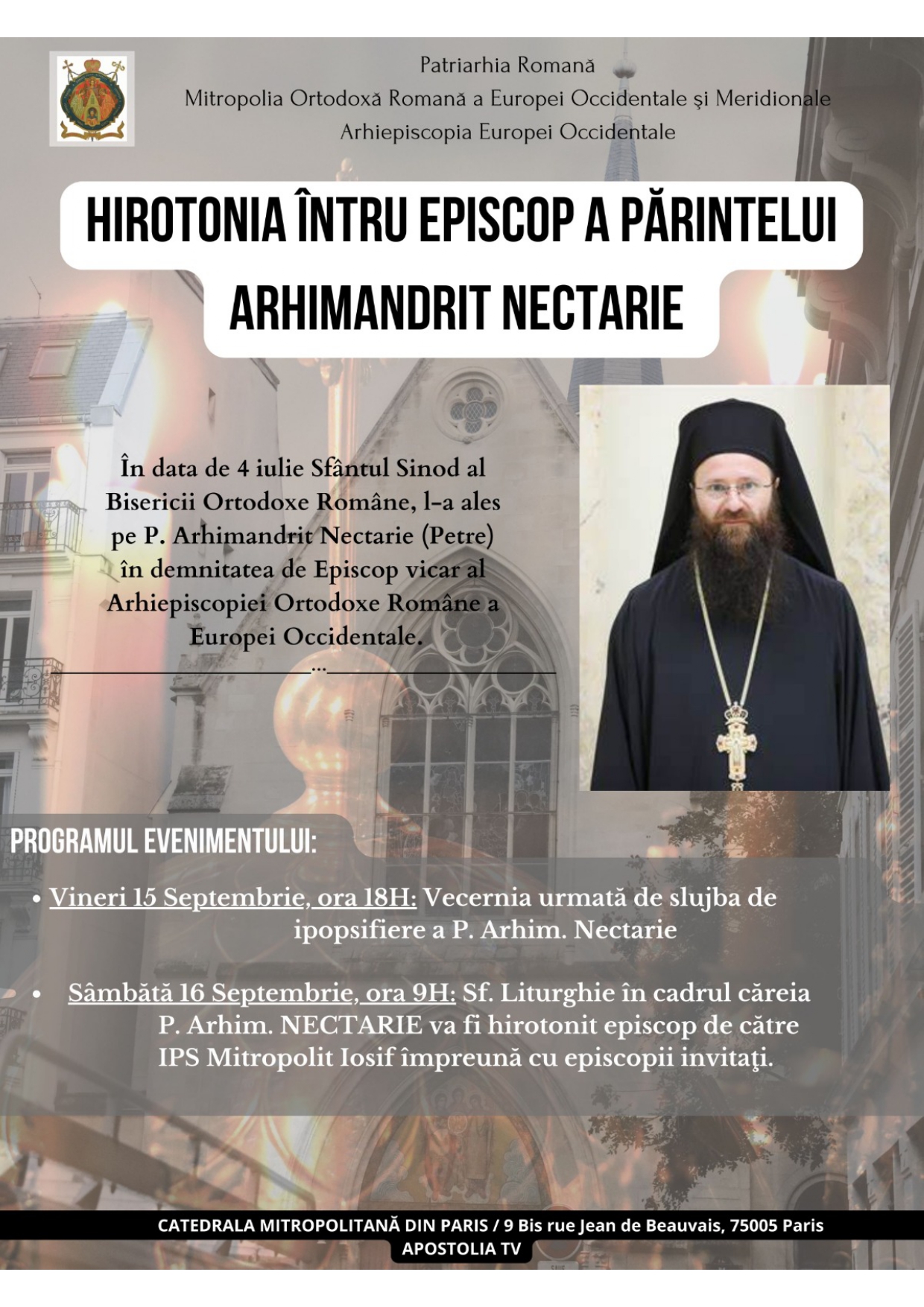 Hirotonia întru episcop a Părintelui Arhimandrit Nectarie - 16 septembrie 2023