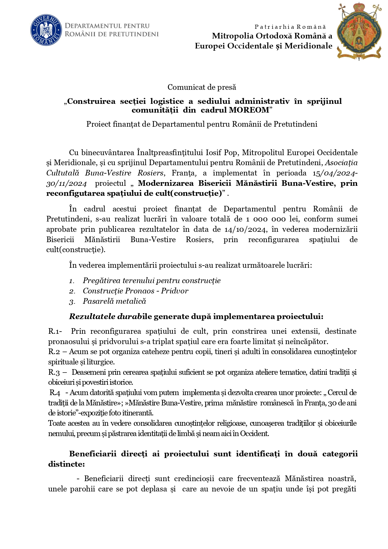 - - Programul slujirii ierarhilor MOREOM – Duminică 05 aprilie 2026